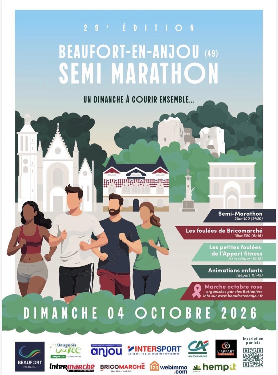 Prends la direction de Beaufort-en-Valléedans le Maine-et-Loire sous les températures automnales mais encore douces du début d'octobre 🍂 . Et Pour profiter pleinement de cette course sur route, choisi la distance qui ne te rendra pas beau et fort mais celle où tes pieds sentiront le beaufort ! Laquelle du 5 km, 10 km ou 21 km te fera sentir le plus fort ? À toi de choisir et si marcher te suffit, les 11 km de marche nordique sont là pour toi.