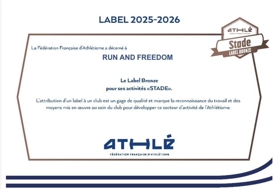 Nous sommes fiers d’avoir obtenu le Label Bronze Running ainsi que le Label Bronze Stade. Â